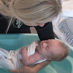 You do not need any special additives for the bath, and in fact, they are to be avoided because newborn babies have a strong sense of smell. During the first few weeks after the birth, it is preferred for the baby to familiarise themselves with their mother's unique scent.